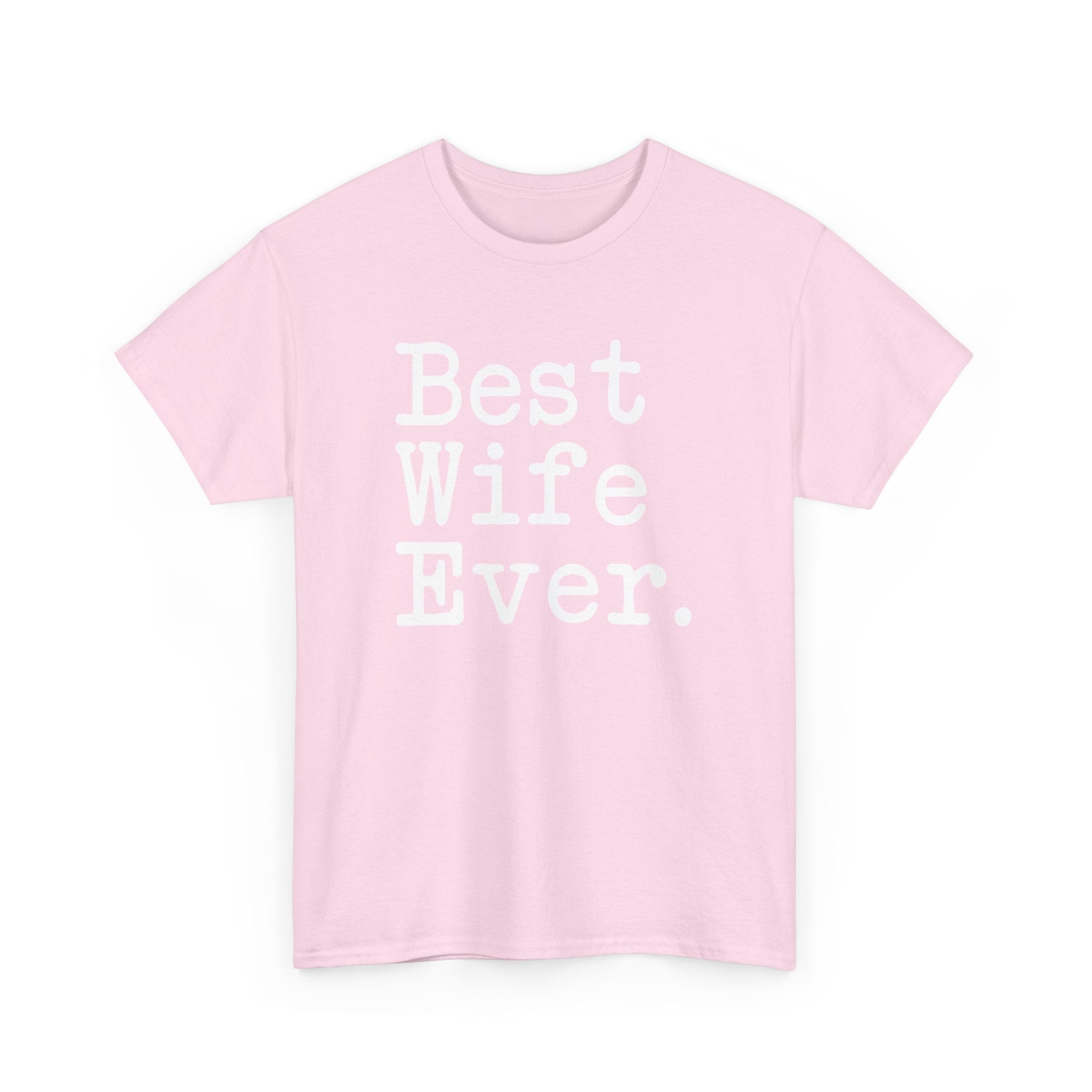 A unique and delightful best wife t-shirt: that you can't beat! This soft cotton tee, featuring the saying "Best Wife Ever", is the perfect way to show your appreciation as an anniversary gift, or Mother's Day gift. This durable unisex tee will definitely put a smile on their face! Make it a memorable Christmas or birthday present that the recipient will enjoy seeing every time they look in the mirror!